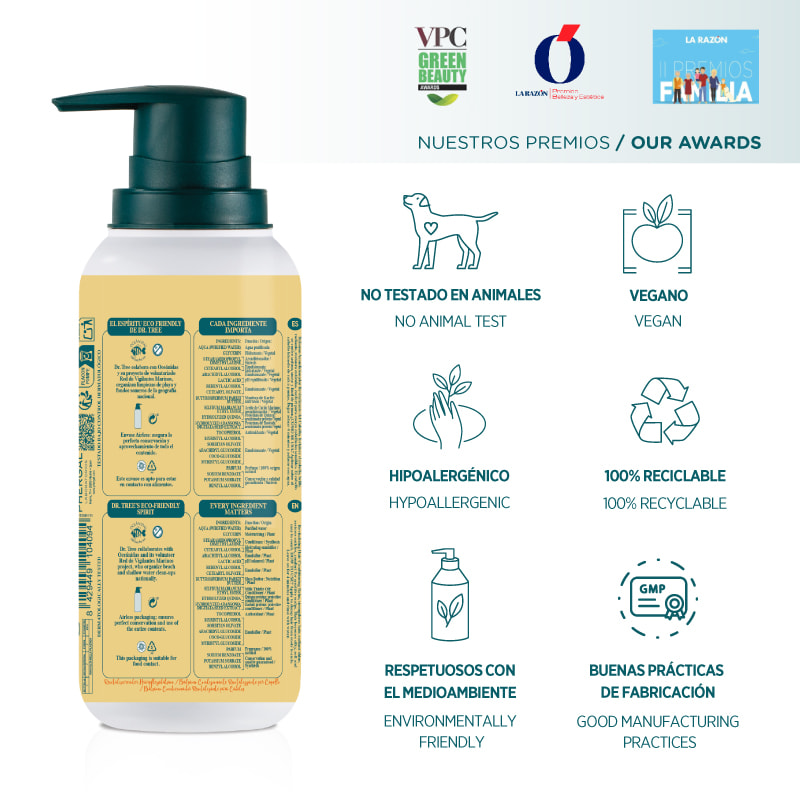 Desde hace años mi madre sufre de desecación del cuero cabelludo y picores. Hemos probado champús de marcas reconocidas en farmacia y le funcionan genial. Cuando vimos la oportunidad de probar el de Dr. Tree no lo pensamos.Composición cuidada, vegana, natural, hidratante y concienciada con el medioambiente que nos terminó de convencer para probar.El bote nos viene con dosificador y la cantidad cunde mucho. Bueno para usar el producto necesario y no desperdiciar.Su textura es tipo crema, que se esparce bien y con un olor rico que me recuerda a manteca de karite.Es para usar tras el lavado, y creo conveniente usar el champú de la marca para mejor resultado.Se aplica, se esperan unos 5 minutos y se aclara. No queda sensación grasa ni en el pelo ni el cuero cabelludo.Mi madre refiere que el pelo está mas suave y fuerte, ella tiene el pelo muy seco y nota que se le cae menos y lo mas importante que mantiene el picor del cuero cabelludo a raya, perfecto.El precio nos parece correcto para el producto, desde luego no es un champú de super.Lo recomiendo!