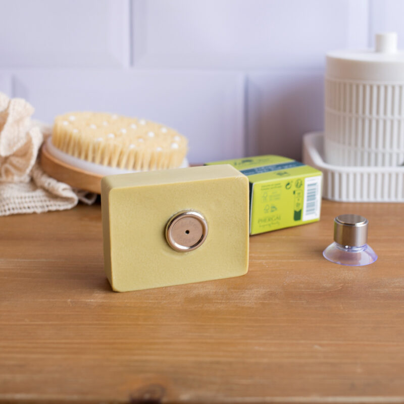 Con el exclusivo imán portasólidos de Dr. Tree podrás tener tus champús y géles sólidos a salvo en la ducha, sin preocuparte de la incomodidad de que se escurran las pastillas al estar mojadas. Sólo tienes que apretar la pieza metálica sobre la pastilla para que se quede dentro de este, y fijar la ventosa a la pared de la ducha.