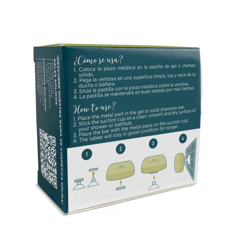 Nuestra jabonera para champú sólido está diseñada para ser usada de manera simple y sencilla, esto significa que puedes instalarla y empezar a usar en cuestión de segundos. Con tan solo usos pasos tu jabonera con ventosa quedara suspendida y lista en cualquier superficie de tu baño.
